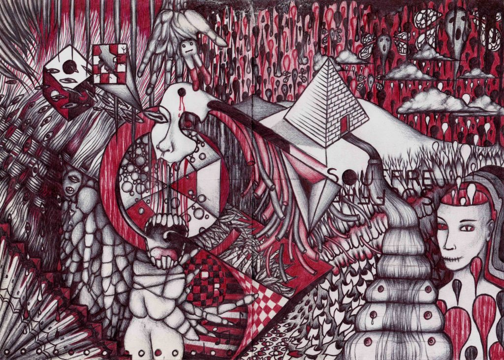 quand il n’y a plus de noir, le rouge le remplace pendant que le dessin tend vers la peinture,