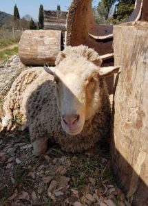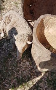 Il faut que je parle du mouton, Bob. Confiné, je fais ce pour quoi je suis fait, produire des œuvres. Bob est venu ici vendredi dernier et il n’a plus quitté les lieux. Il a tout de l’animal de compagnie. Il me suit partout où je vais. Le platane est un bois dur à sculpter. Le dos courbé, je sculpte, je creuse.